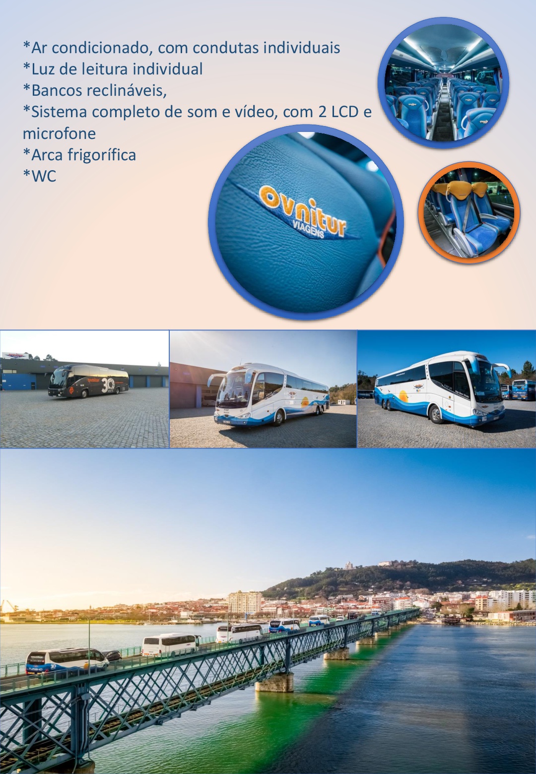 Os serviços da empresa combinam a qualidade de um autocarro de longo curso com a dos autocarros de turismo ocasional. A nossa frota prima pela qualidade, sendo a maioria dotada de toda a tecnolodia e os mais modernos sistemas de segurança e conforto.